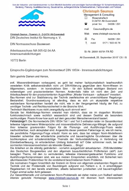 Nachstehend weitere Normeinsprüche von mir mit teilweise nicht „wasserdichter“ DIN-Kommentierungen