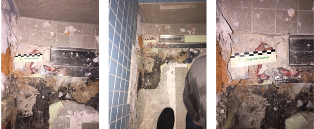 Ursache: Falscher Fußbodenaufbau mit mangelhaft ausgeführter Verfliesung, fehlerhafter Verbundabdichtung sowie Verwendung ungeeigneter Materialien